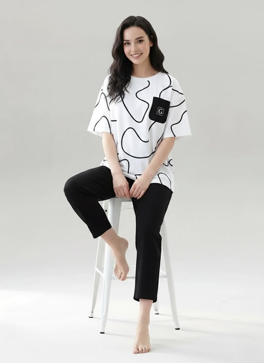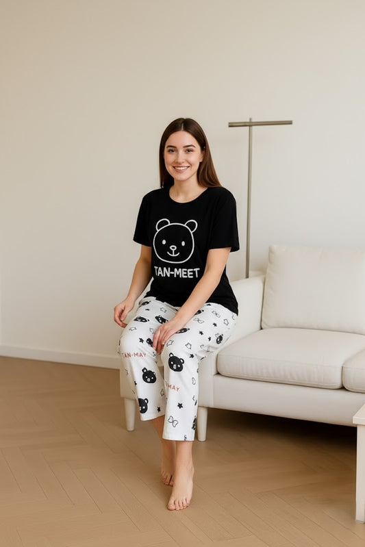 Black Printed Capri Night Suit