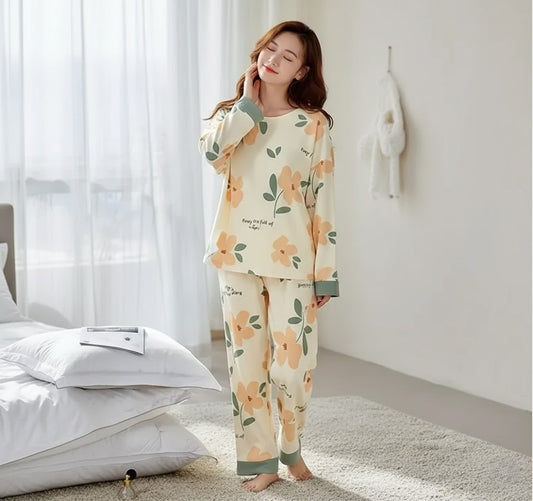 ORANGE FLOWER PRINTED PJ SUIT FULL SLEEVES